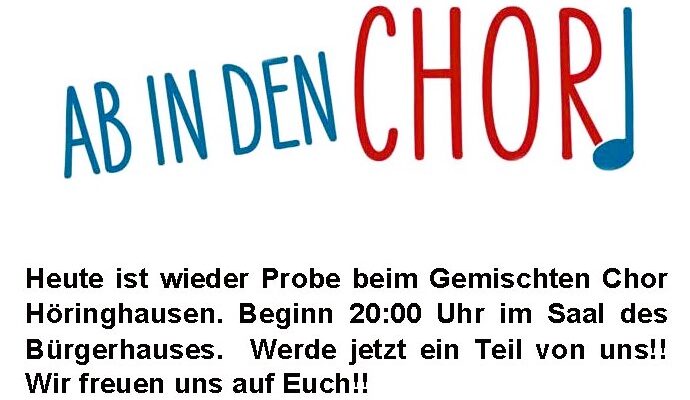 Gemischter Chor Höringhausen Ein Chor für alle, die ohne Noten und Erfolgsdruck, dafür mit viel Spaß singen möchten – auch und gerade, wenn sie glauben, es nicht zu können. Jeder…