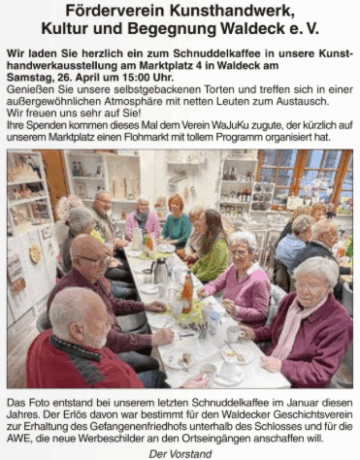 Allgemein Schnuddelkaffee in Kunsthandwerkerausstellung in Waldeck Heike Jäckel Posted on 24. Apr 202524. Apr 2025
